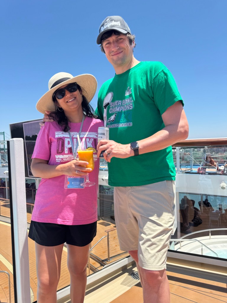The next morning was calm. Max joined a Gaga ball tournament while Shivani enjoyed a “ladies pampering” session at the Music Hall. I walked two miles around the top deck, Corona in hand. Don’t judge, it’s a sea day. We later got hustled by the arcade claw machine for $20 (we didn’t even come close) and snagged a SeaPlex Xbox slot after an hour’s wait. You have to book those at the SeaPlex front desk.